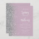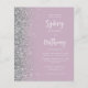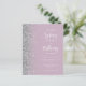 The left-hand edge of this elegant modern wedding invitation features a silver faux glitter border. The customizable text combines white calligraphy script and sans serif font on a dusty lilac background. The reverse side features a matching dusty lilac and silver design.