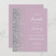 The left-hand edge of this elegant modern wedding invitation features a silver faux glitter border. The customizable text combines pale silver grey handwriting, copperplate and italic fonts on a dusty lilac background. Add additional details on the back, along with a QR code to help your guests visit your wedding website.