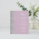 The left-hand edge of this elegant modern wedding menu features a silver faux glitter border. The customizable text combines white handwriting script and copperplate fonts on a dusty lilac background. The reverse side features a matching dusty lilac and silver design.