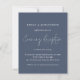 Budget Dusty Navy Blue Wedding Evening Reception Invitation. A budget price SMALLER 4.5” x 5.6” alternative. Available in a SEMI GLOSS 110 lb CARD STOCK which is the default option (recommended for invitations), OR a SATIN FINISH 80 lb THINNER PAPER STOCK (ideal for enclosures). A set handwritten style for Evening Reception and the rest of the text you can easily personalise. The text and background colours can be changed to any or your choice via the customise further option.