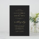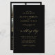 Elegant simple minimalist romantic budget affordable all in one RSVP and guest details black wedding invitation template featuring a classy stylish chic trendy faux gold handwritten calligraphy script, a scanning QR CODE (automatically generated with your website link), and 4 custom photo collage. ++++++++++++ Easy to personalize with your engagement pictures and details on both sides! The invitation is suitable for spring summer autumn fall and winter modern trendy stylish weddings.