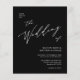 Elegant Black and White Modern Script All In One Minimalist Wedding Invitation budget-friendly Flyer. All the texts are pre-arranged for you to personalize easily and quickly with your own details. (Please note that ENVELOPES ARE NOT included. This is a thin, value Matte paper flyer version-uncoated (also available for an option to select coated paper). The dimensions of this flyer are 4.5" x 5.6" and fit well into standard A6 size envelopes. Please visit our store to upgrade for a thicker paper and for many other beautiful card options.