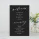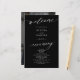 Modern simple minimalist white script trendy solid black ceremony and party BUDGET affordable wedding program template featuring chic trendy romantic elegant calligraphy and custom photo dark overlay on the backside. ++++++++++++ Easy to personalize with your custom text and picture on both sides!