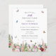 The design features pretty and feminine watercolor pink and purple flowers including roses, tulips, lavender and eucalyptus greenery with brightly coloured butterflies and bumble bees flying around.