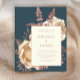 This elegant wedding invitation features a lush, romantic floral bouquet in ivory with rose gold faux foil and glitter foliage on a teal blue background. Customize the rose pink text in stylish fonts on an ivory rectangle. The back of the card is solid teal.