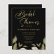 Classy chic faux gold calligraphy script moody black BUDGET affordable bridal shower invitation with botanical garden watercolor neutral sage green foliage. ++++++ Suitable for elegant vintage style bridal shower celebrations.++++++++++ Please note that the background colour on both sides is editable. You can change it after selecting CUSTOMIZE option. If you need help, you can use Live Design Service free of charge. ++++++++++ PLEASE READ THIS BEFORE PURCHASING! This is a budget affordable wedding card printed on a paper sheet (each sheet has one card). ++++ For the best rapport price-quality, our advice is to choose the Semi-Gloss paper type (it is thick enough to be used for stationery) ++++ If you need envelopes, choose the ENVELOPE OPTION. +++ Double-check all the information and spelling of your text because you will receive exactly what you see - no one else will check anything before printing. ++++ This card is designed for size 4.5" x 5.6". In the case you choose another size of the card and text goes outside page, everything needs to be fixed before adding the product to cart. Please ask Live Design Service for help.