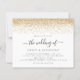 A value for money BUDGET alternative on a smaller size 4.5 x 5.6” semi-gloss 110lbs weight, which is of similar thickness to a postcard (however is not suitable to use as a postcard.). PLEASE NOTE there is ONE invite per sheet. Budget Elegant Gold Faux Glitter Wedding White Invitation. A border of rose gold glitter is on each side, and The Wedding Of in a handwriting style script. Easily personalise the text to your own details. You can also change the text and background colours via the customise further option if you wish.
