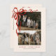Budget Elegant Red Bow Christmas Four Photo Holiday Card features a beautiful watercolor red bow around your two photos.