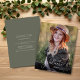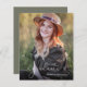Budget Modern Elegant Script Photo Graduation Announcement featuring your photo and our trendy script overlay in white The back is a boho chic sage green, but all fonts and colours are easily modified. Stylish swirly text sets off your photo. Perfect for celebrating your graduate! Chic and darling. Please contact us at cedarandstring@gmail.com if you need assistance with the design or matching products.