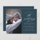 A budget elegant script 2 photo wedding save the date card featuring calligraphy, a vertical photo and classic text on the front. The back has a horizontal photo and wedding website for guests to get more information. Click the edit button to customize this design.