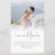 PLEASE NOTE there is ONE invite per sheet. Budget Photo QR Code Script Wedding Invitation. A LARGER size 5.5” x 8.5” at a budget price. PLEASE NOTE THE OPTIONAL ENVELOPES ARE A LITTLE BIGGER IN SIZE AT 6.75” x 9” approx. Budget Elegant Script Photo Wedding Love Thanks. Love and thanks is in a set handwritten style. Easily personalise the rest of the text to your own details and replace the sample photo on the front with your own.