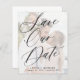 Modern romantic chic BUDGET affordable wedding save the date template with your custom photo in trendy faux vellum white transparent overlay with black classy hand lettered calligraphy script. +++++++++++ Easy to personalize with your details and picture on both sides! ++++++++++ Suitable for any season elegant wedding theme. +++++++++ Please note that the background colour on the backside is changeable. You can modify it after selecting CUSTOMIZE option. If you need help, you can use Live Design Service free of charge. ++++++++++ PLEASE READ THIS BEFORE PURCHASING! This is a budget affordable wedding card printed on a paper sheet (each sheet has one card). ++++ For the best rapport price-quality, our advice is to choose the Semi-Gloss paper type (it is thick enough to be used for stationery) ++++ If you need envelopes, choose the ENVELOPE OPTION. +++ Double-check all the information and spelling of your text because you will receive exactly what you see - no one else will check anything before printing. ++++ This card is designed for size 4.5" x 5.6". In the case you choose another size of the card and text goes outside page, everything needs to be fixed before adding the product to cart. Please ask Live Design Service for help.