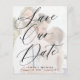 Modern romantic chic BUDGET affordable wedding save the date FLYER template with your custom photo in trendy faux vellum white transparent overlay with black classy hand lettered calligraphy script. +++++++++++ Easy to personalize with your details and picture on both sides! ++++++++++ Suitable for any season elegant wedding theme. +++++++++ Please note that the background color on the backside is changeable. You can modify it after selecting CUSTOMIZE option. If you need help, you can use Live Design Service free of charge.++++++++++ PLEASE READ THIS BEFORE PURCHASING! This is a budget affordable wedding card printed on a FLYER. ++++ Please note that BUDGET PAPER IS THIN - You can upgrade to have this card printed on cardstock ++++ ENVELOPES NOT INCLUDED. +++ Double-check all the information and spelling of your text because you will receive exactly what you see - no one else will check anything before printing. ++++ This card is designed for size 4.5" x 5.6". In the case you choose another size of the card and text goes outside page, everything needs to be fixed before adding the product to cart. Please ask Live Design Service for help.