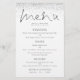 Budget Elegant Script Silver Glitter Wedding Menu. A budget price size 5.5” x 8.5”, An elegant design, with a stylish set script for the header Menu. Easily personalise the rest of the text to your own details which includes alternatives for your vegan or vegetarian options. A silver faux glitter border runs along the top edge on both sides. You can also change text styles and colours as well as the background colours via the customise further option if you wish.