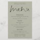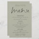 Budget Elegant Script Soft Sage Green Wedding Menu. A budget price size 5.5” x 8.5”, An elegant typographical design with a handwriting style set script for the header Menu. Easily personalize the rest of the text to your own details which includes space for your vegan or vegetarian options. You can also change text styles and colors as well as the background colors via the customize further option if you wish.