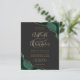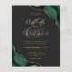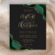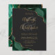 An emerald green watercolor agate design trimmed with faux gold glitter appears in two corners of this elegant design. Personalize it with the couple's names in gold-coloured handwriting script over a large grey ampersand. Add the wedding details in gold-coloured copperplate and italic fonts on a slate black background. The reverse side features a matching green and gold agate design.