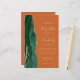 The left-hand edge of this elegant modern wedding invitation features an emerald green watercolor agate border trimmed with faux gold glitter. The customizable text combines gold-coloured handwriting, copperplate and italic fonts on a burnt orange or rust background. Add additional details on the back, along with a QR code to help your guests visit your wedding website.