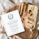 Introduce your wedding with a stunning sage green invitation featuring an elegant floral crest monogram. The soft sage green hue exudes natural beauty and serenity, while the floral crest adds a timeless, sophisticated touch. Perfect for couples seeking a refined and graceful design, this invitation blends classic charm with modern elegance. The personalized monogram makes it uniquely yours, setting the tone for an unforgettable celebration. Ideal for garden or formal weddings, this invitation beautifully reflects your special day.