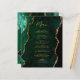 Cet élégant menu mariage moderne comprend une bordure en aquarelle vert émeraude bordée d'une parties scintillant en faux or. Le texte personnalisable combine un script d'écriture manuscrite de couleur or et des polices de cuivre. L'envers est assorti d'une agate vert émeraude et or.