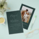 Budget Personalize this Emerald Forest Green Simple Minimalist and Elegant Double Sided with photo on back Invitation with your message and details. This chic invitation includes modern and elegant stylish simple handwritten script typography for the special Wedding to Be celebration.