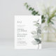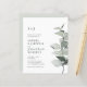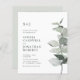 Budget All in One with QR Code Elegant Watercolor Eucalyptus Wedding Invitation... Our UPDATED affordable double-sided botanical wedding invitation features an elegant watercolor eucalyptus branch in rustic sage and dusty green shades setting off the invitation text beside it. The light sage green back of the invitation contains all of the details you would typically see on separate cards within the wedding packet. This modern style all-in-one wedding invitation was designed to be both elegant and budget conscious... not to mention time-saving. Included on the back is a QR code graphic template you can REPLACE instantly with YOUR OWN CODE by entering your wedding website URL right on the personalization template. All example text can be easily revised with your own information on the same template. PLEASE NOTE: "Budget" card paper is not quite the same as the traditional flat card invitations. Our budget cards are 4.5 x 5.6 inches made of semi-gloss 110 lb paper compared to traditional wedding invitation flat cards at 5 x 7 inches in matte paper at 120 lb weight. Also, the budget cards do not automatically come with envelopes, as do the traditional invitation cards, but you can purchase them on the same page at checkout if you wish. This eucalyptus design is also available on a traditional 5x7 wedding invitation card as well as many other matching products.
