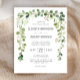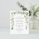 This stylish rustic wedding invitation features a delicate watercolor eucalyptus greenery arch. Personalize it with the couple's names and wedding details in charcoal gray sans serif font. The back of the card is a solid shade of green matching the watercolor design. NOTE: Envelopes are not automatically included with these budget invitations, so please remember to choose the "blank white envelopes" option!