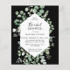 This Botanical Leafy Bridal Shower Invitations - features black handwritten and elegant script text with greenery Eucalyptus frame on the black background. The reverse side of the bridal invitation is laconic black.