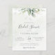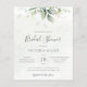 Beautiful bridal shower invitation featuring watercolor eucalyptus and gold leaves.