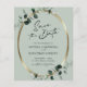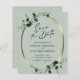 Budget Eucalyptus Gold Modern Calligraphy QR Code Sage Wedding Save the Date... Our affordable botanical sage Save the Date card features a faux gold metallic oval frame embellished with emerald-hued eucalyptus leaves creating a natural looking border for the announcement text within. The sage green back of the card contains your wedding website information and an example QR code graphic you can replace by simply entering your own wedding website URL on the template. All example text on both sides of the card (aside from the calligraphy elements) can be easily revised with your own details on the same personalization template.