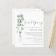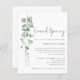 Budget Eucalyptus Company Store Opening Invitation. A budget price SMALLER 4.5” x 5.6” alternative. Available in a SEMI GLOSS 110 lb CARD STOCK which is the default option (similar to the thickness of a postcard, recommended for invitations), OR a SATIN FINISH 80 lb THINNER PAPER STOCK (ideal for enclosures). Minimalist botanical style, with watercolor greenery flowing down on the left hand side and text to the right. A set informal script for Grand Opening and the rest of the text you can easily personalise.