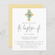 A value for money BUDGET alternative on a smaller size 4.5 x 5.6” semi-gloss 110lbs weight, which is of similar thickness to a postcard (however is not suitable to use as a postcard.). PLEASE NOTE there is ONE invite per sheet. Budget Eucalyptus Cross Script Baptism Invitation. A set script for The Baptism Of and the rest of the text you can easly personalise. You can also change the text and background colours on each side if you wish via the customise further option.