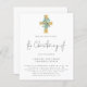 A value for money BUDGET alternative on a smaller size 4.5 x 5.6” semi-gloss 110lbs weight, which is of similar thickness to a postcard (however is not suitable to use as a postcard.). PLEASE NOTE there is ONE invite per sheet. Eucalyptus Cross Script Christening Invitation. A set script for The Christening Of and the rest of the text you can easly personalise. You can also change the text and background colours on each side if you wish via the customise further option.