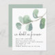 Eucalyptus Decided on Forever Script Save The Date. A budget price SMALLER 4.5” x 5.6” alternative. Available in a SEMI-GLOSS 110 lb CARD STOCK which is the default option (thicker for invitations), OR a SATIN FINISH 80 lb THINNER PAPER STOCK (ideal for enclosures). Envelopes are an optional extra and are slightly larger than the card size. An artsy watercolor green eucalyptus design and informal set handwriting script for the header. The rest of the text you can easily personalise.
