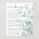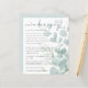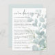 Eucalyptus Downsizing Livestream Wedding. A budget price SMALLER 4.5” x 5.6” alternative. Available in a SEMI GLOSS 110 lb CARD STOCK which is the default option (for invitations), OR a SATIN FINISH 80 lb THINNER PAPER STOCK (ideal for enclosures). Envelopes are an optional extra and are slightly larger than the card size. If circumstances mean it has been necessary to downsize your wedding, this invites your guests to the livestreaming of your ceremony. This design has modern eucalyptus tinted to the right and modern handwritten style set script for the main header. The rest of the text you can easily personalise. A coordinating powder blue is on the back