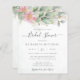 Belle invitation à la douche nuptiale avec eau rose fleurie eucalyptus et feuilles d'or.