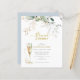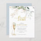 Beauty and fun with this brunch & bubbly Bridal Shower champagne luncheon invitation designed with whispy soft eucalyptus branches gilded gold leaves, and a dusty blue backdrop on the back of the card. Easily customize with the bride-to-be name and other important information.