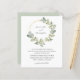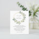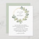 Simple and elegant is this sage green eucalyptus wedding invitation template. Featuring original watercolor eucalyptus artwork arranged in a romantic wreath with gold rings. Customize the text to create something really unique.