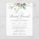 Beautiful bridal brunch invitation featuring watercolor eucalyptus and gold leaves.