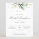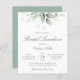 Beautiful affordable bridal luncheon invitation featuring watercolor eucalyptus and gold leaves with calligraphy script.