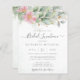 Beautiful bridal luncheon invitation featuring blush pink floral watercolor eucalyptus and gold leaves.