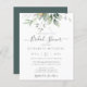 Beautiful bridal shower invitation featuring watercolor eucalyptus and gold leaves.