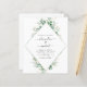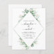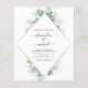 Budget Eucalyptus Greenery Botanical and Green and Gold Geometric Watercolor Spring Wedding Invitations on White background - includes beautiful and elegant script typography with modern botanical leaves and greenery for the special Wedding day celebration.