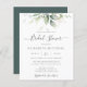 Beautiful bridal shower invitation featuring watercolor eucalyptus and gold leaves.