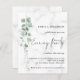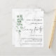 Budget Eucalyptus Marble Wedding Evening Party Invitation. A value for money BUDGET alternative on a smaller size 4.5 x 5.6” semi-gloss 110lbs weight, which is of similar thickness to a postcard (however is not suitable to use as a postcard.). PLEASE NOTE there is ONE invite per sheet. A Minimalist botanical style to invite your evening wedding guests. A set handwritten script for Evening Party and the rest of the text you can easily personalise. An elegant branch of watercolor eucalyptus leaves runs down the left hand side.