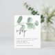 Eucalyptus Elegant Script QR Code Wedding RSVP enclosure. A budget price SMALLER 4.5” x 5.6” alternative. Available in a SEMI-GLOSS 110 lb CARD STOCK which is the default option (thicker for invitations), OR a SATIN FINISH 80 lb THINNER PAPER STOCK (ideal for enclosures). Add your QR code to your wedding website on the back makes this a convenient option for your guests to RSVP. You can create QR codes for free online. Simply search “QR code creator” and lots of options come up to create for free.. Artsy green watercolor eucalyptus flow across the top and an elegant informal set style for the header with all the details stylishly small beneath.