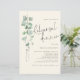 A LARGER size 5.5” x 8.5” at a budget price, on a SEMI GLOSS 110 lb CARD STOCK, great for invitations, at roughly the same thickness as a postcard, or an elegant 110 lb LINEN stock – for a luxury, slightly thinner feel at great value. PLEASE NOTE THE OPTIONAL ENVELOPES ARE A LITTLE BIGGER IN SIZE AT 6.75” x 9” approx. This budget size alternative is also available in other paper choices. The FELT 100 lbs paper is buff coloured, NOT white, so adds a rustic touch. The MATTE 80lbs paper stock is bright white, for crisp printing, great for your menus and programs, whilst the SATIN 80lbs paper is thin and light, ideal for enclosures. PLEASE NOTE there is ONE invite per sheet. Budget Eucalyptus Sage Cream Rehearsal Dinner Invitation. This modern design has sage green eucalyptus leaves to the left hand side and with informal set script for Rehearsal Dinner. The rest of the typography you can easily personalise. There's an ivory background on the front and sage green on the back. You can also change text and background colours on either side if you wish via the Customize Further option.
