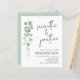 There are two paper options to choose from for this size (4.5 x 5.6”) in the Budget range. For this product, I would recommend the semi-gloss which is a 110 gsm card stock, similar in thickness to a postcard. The Satin option is a much thinner paper 80gsm. The default is set to semi-gloss. PLEASE NOTE there is ONE per sheet. Budget Eucalyptus Script Engagement Invitation. A Minimalist botanical style with an elegant branch of watercolor eucalyptus leaves running down the left hand side and stylish modern typography.
