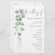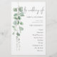 Budget Eucalyptus Script Wedding Program. Size 5.5” x 8.5” at a budget price, Elegant watercolor eucalyptus leaves are on each side running from the top. The main header is in a stylish set script and the rest of the text you can easily personalise. If you need any assistance with your editing of this design, please message me.