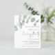 A value for money BUDGET alternative on a smaller size 4.5 x 5.6” semi-gloss 110lbs weight, which is of similar thickness to a postcard (however is not suitable to use as a postcard.). PLEASE NOTE there is ONE invite per sheet. Budget Eucalyptus Wedding Evening Party Invitation. Minimalist botanical style to invite your evening wedding guests. A set handwritten script for Evening Party and the rest of the text you can easily personalise. An elegant branch of watercolor eucalyptus leaves flows in from the aboce the text.
