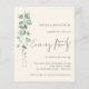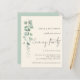 A value for money BUDGET alternative on a smaller size 4.5 x 5.6” semi-gloss 110lbs weight, which is of similar thickness to a postcard (however is not suitable to use as a postcard.). PLEASE NOTE there is ONE invite per sheet. Budget Eucalyptus Wedding Evening Party Ivory Invitation. Minimalist botanical style to invite your evening wedding guests on anivory background on the front and coordinating sage green on the back. A set handwritten script for Evening Party and the rest of the text you can easily personalise. An elegant branch of watercolor eucalyptus leaves runs down the left hand side.